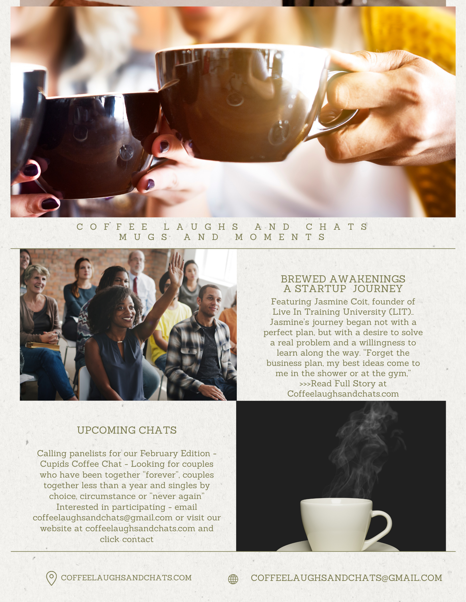 Get the latest updates from Coffee, Laughs, and Chats delivered straight to your inbox! Sign up for our monthly newsletter and be the first to know about Featured Chats, upcoming features, and general news. Don't miss out – join our community today!